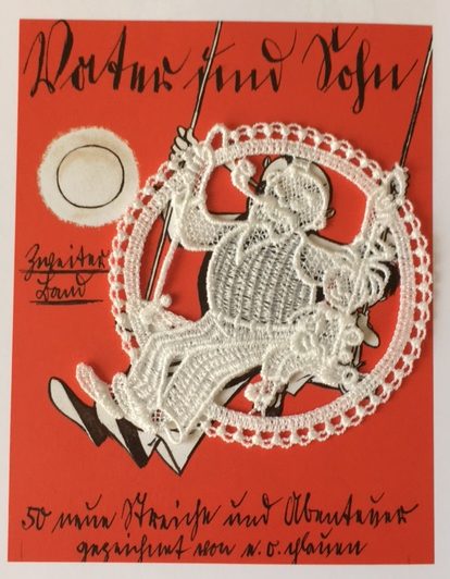 Ganz neu ist in diesem Jahr bei der Modespitze als Reminiszenz an den großen Künstler der Stadt das erste von mehreren Motiven aus Plauener Spitze mit Vater und Sohn gestickt worden. Es ist im Ladengeschäft der Annenstraße in Plauen aber auch in unserem Online-Shop erhältlich.